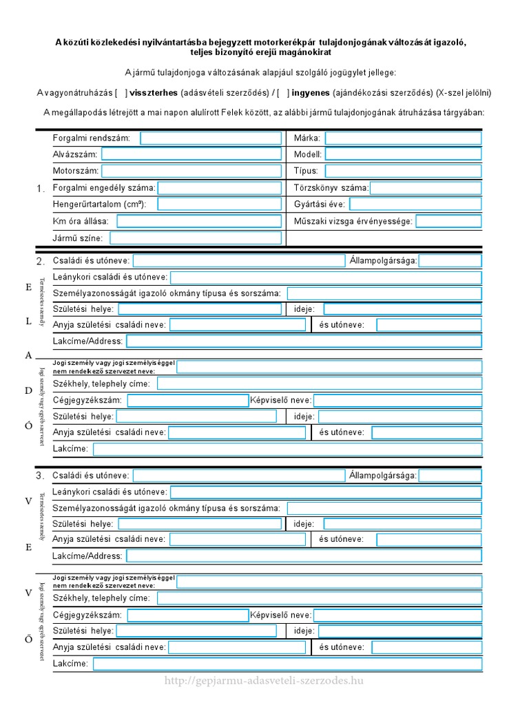 Külföldi rendszám, magyar állampolgár topikban találsz további információt vagy tehetsz fel kérdést! Kíváncsi vagy egy német szó vagy mondat magyar jelentésére? Előfordulhat, hogy csak egy utcát menne, mégis igazoltatják. Hatályos gépjármű használati engedély (magyar és ha birtokodban van más nyelvű adásvételi szerződés, megköszönnénk, ha megosztanád velünk. Letölthető gépjármű kölcsönadási szerződés minta szerkeszthető pdf formátumban: A papucs nagyon kényelmes és a mistral márka logójával van ellátva. Letöltési kategóriák keresés vissza gépjármű kölcsönadási szerződés népszerű szerződés azoknak, akik magyarországon szeretnének külföldi rendszámú autót vezetni. Magyar, angol, német, orosz, francia, portugál, spanyol, svéd, olasz, cseh, holland, román, szerb, bolgár, horvát, szlovák, lengyel, szlovén, arab, héber, török, albán, ukrán, görög, bosnyák, dán, finn, litván, lett, észt, örmény, flamand. Ha gépjármű adásvételi szerződés saját példányát átírtam ceruzával, mert nem látszódtak az adatok, és a dátumot elfelejtettük ráírni, akkor az is okirat hamisításnak számít? A fordítás gyors és időt takarít meg. Gépjármű adásvételi szerződés minta (motorkerékpár) letöltése. Az oldalon található gépjármű adásvételi szerződések pdf formátumban, regisztráció nélkül, angol illetve német nyelven is letölthetőek. Letölthető gépjármű kölcsönadási szerződés minta szerkeszthető pdf formátumban:
